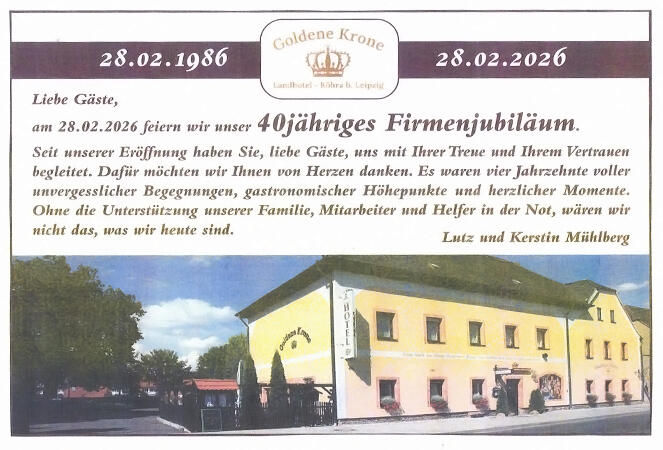 Seit 1514 im Herzen von Köhra. Wir begrüßen Sie mit einem Lächeln.