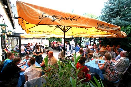 Lassen Sie den Tag gemütlich ausklingen und genießen Sie an warmen Tagen die romantische Atmosphäre unseres herrlich begrünten Biergartens mit großen Kastanien- und Eichenbäumen.